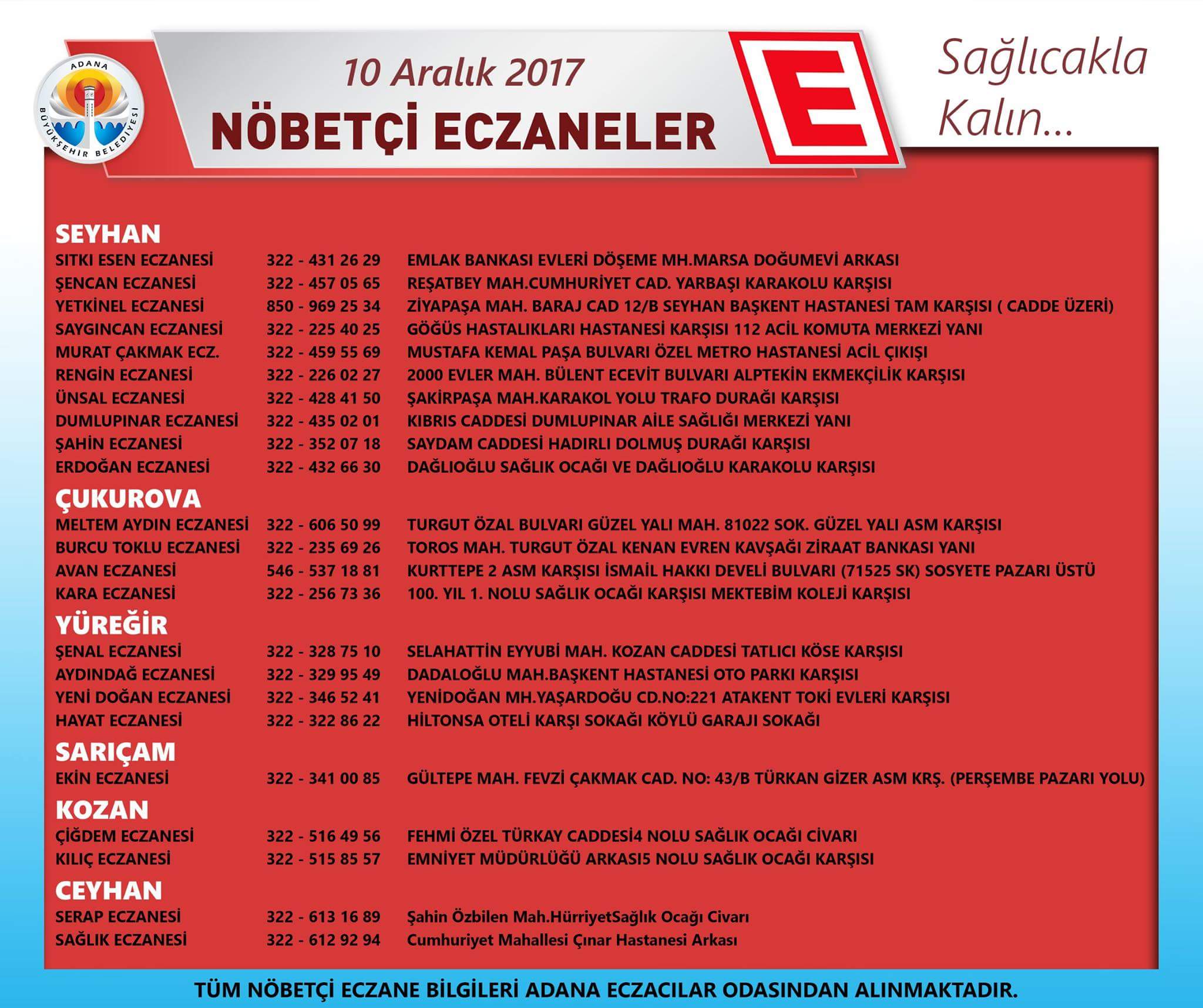 Huzurevler mh.kurttepe cd.161 sk tekin apt. Adana nöbetçi eczaneler / 11 nisan 2021. 9 mayıs 2021, pazar adana i̇linde nöbetçi eczaneler. Adana ili eczaneler listesi ile bulunduğunuz ilçe ve mahalleye en yakın eczanelerin açık adresini ve telefon numarasını öğrenebilir. Adana ilinde toplam 34 adet nöbetçi eczane bulunmaktadır.